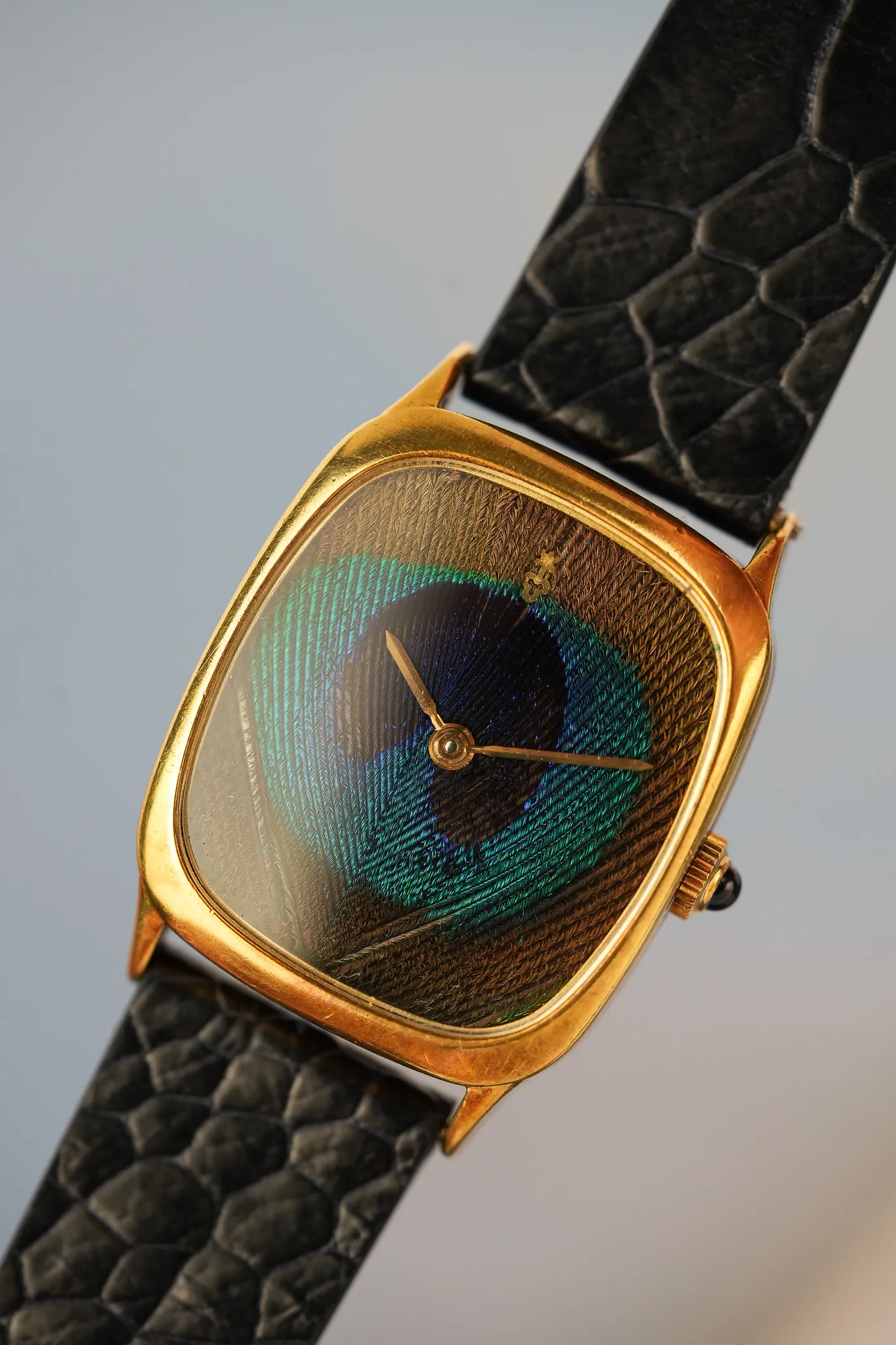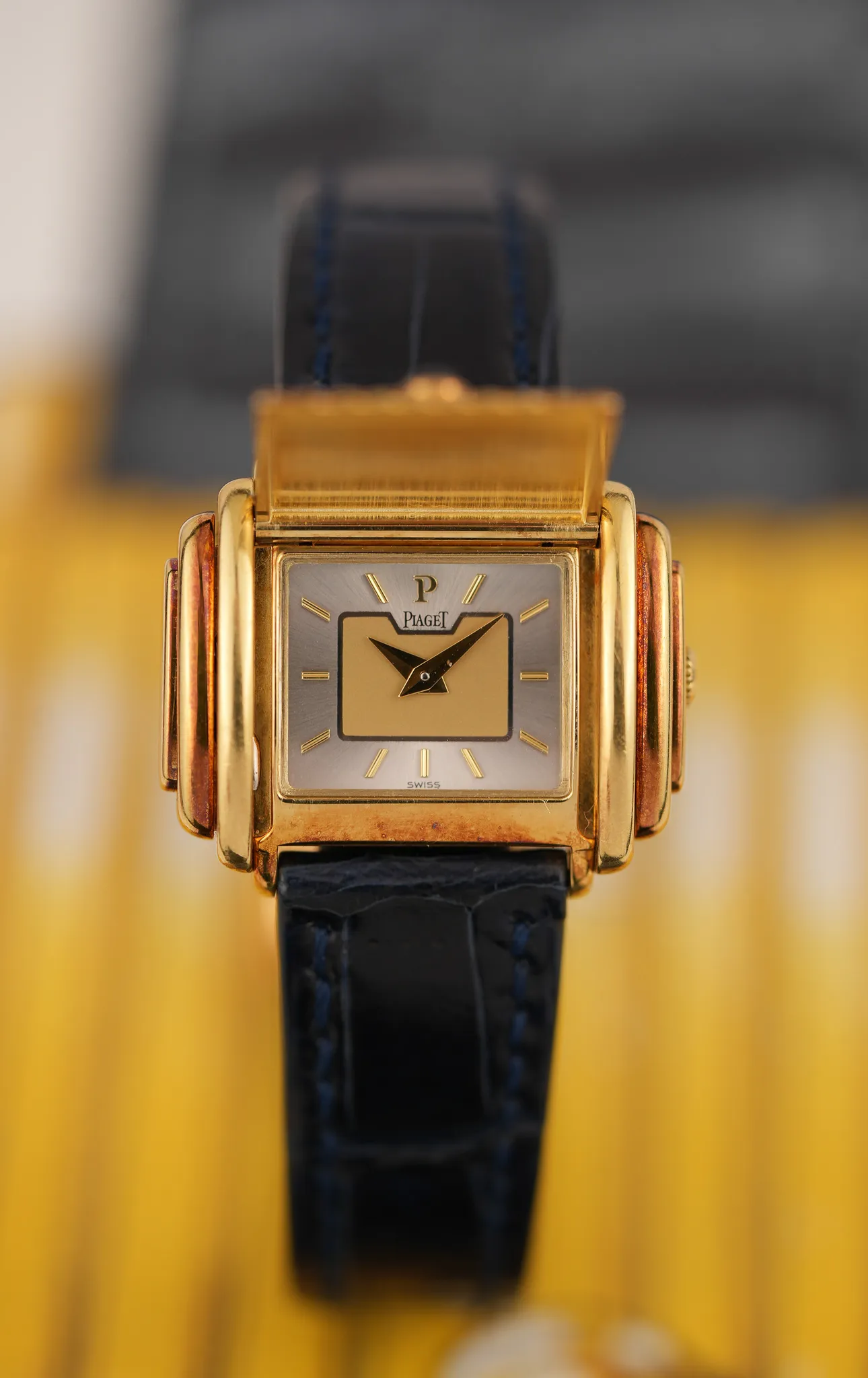 The 18k yellow gold case shows light surface marks with attractive patina developing around the crevices and edges.