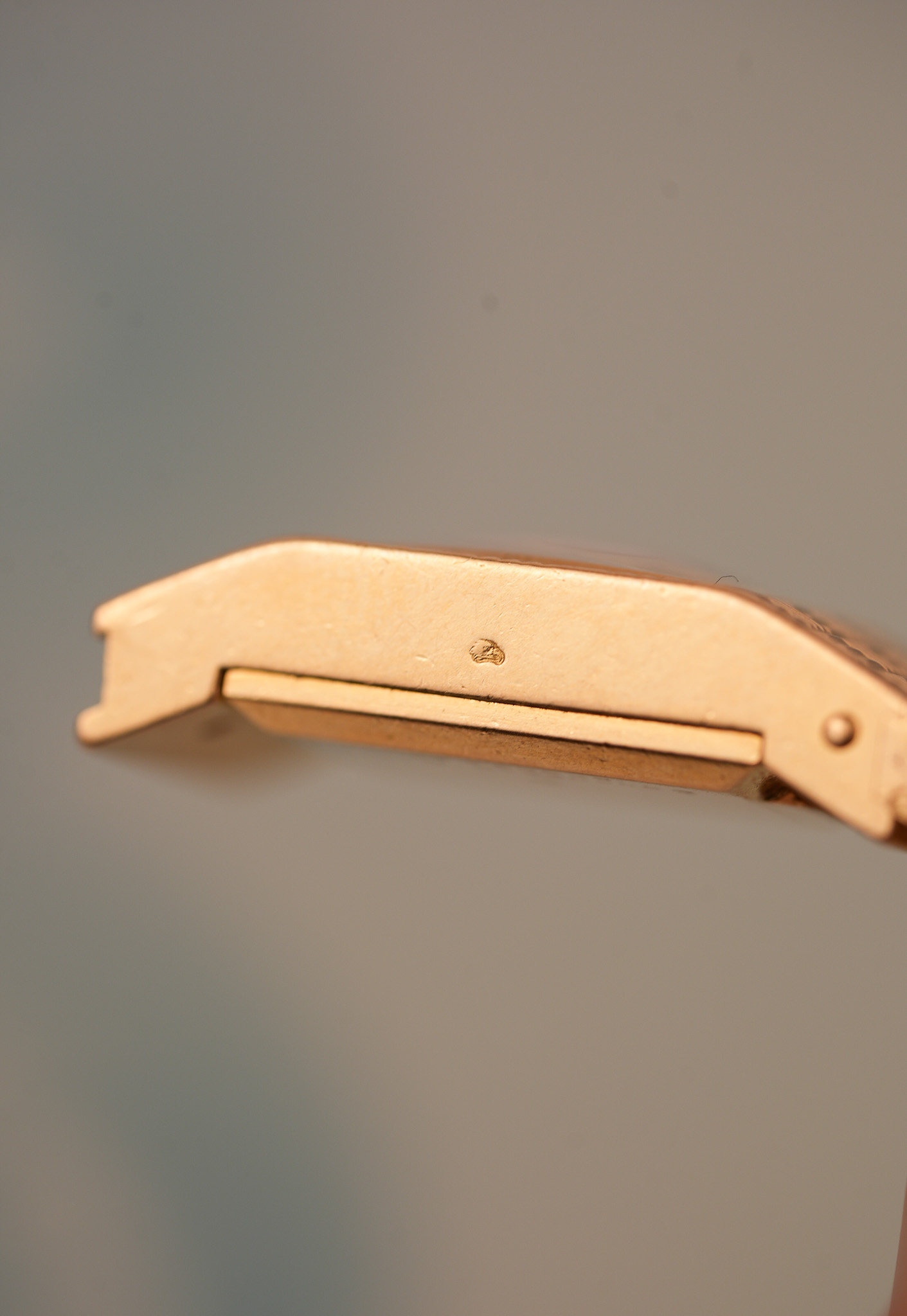 The 18K yellow gold strap is well preserved, comfortable with no warping or worn links.