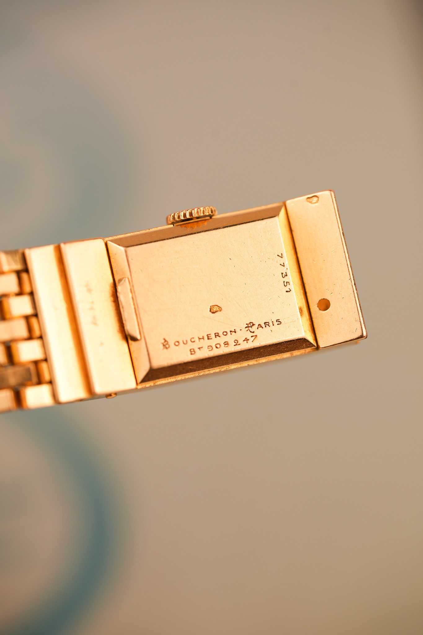 On the technical front, it’s pure Boucheron Paris. Comes complete with a manual wound movement and French eagle head hallmarks for 18K gold stamped everywhere you could possibly want (and a few places you wouldn’t expect). Collectors know Boucheron didn't exactly hold back when it came to hallmarking. You’ll find stamps on the caseback, case sides, and clasp, because French pride was clearly the point here.