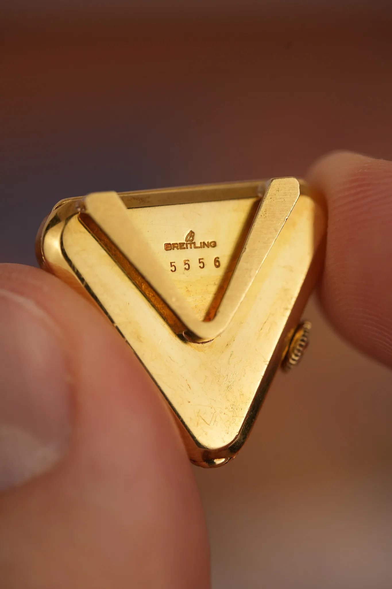 The caseback is signed Breitling and stamped with reference number 5556, with clear hallmarks present.