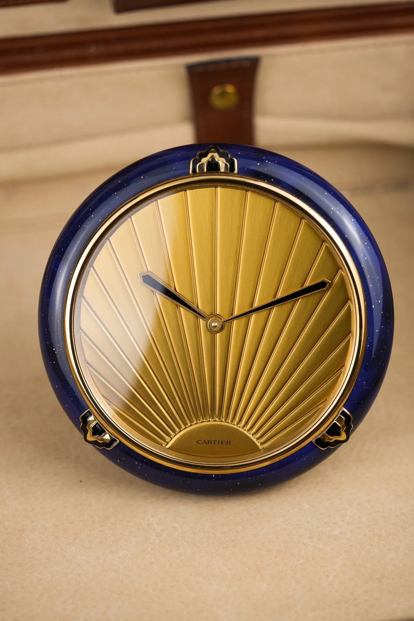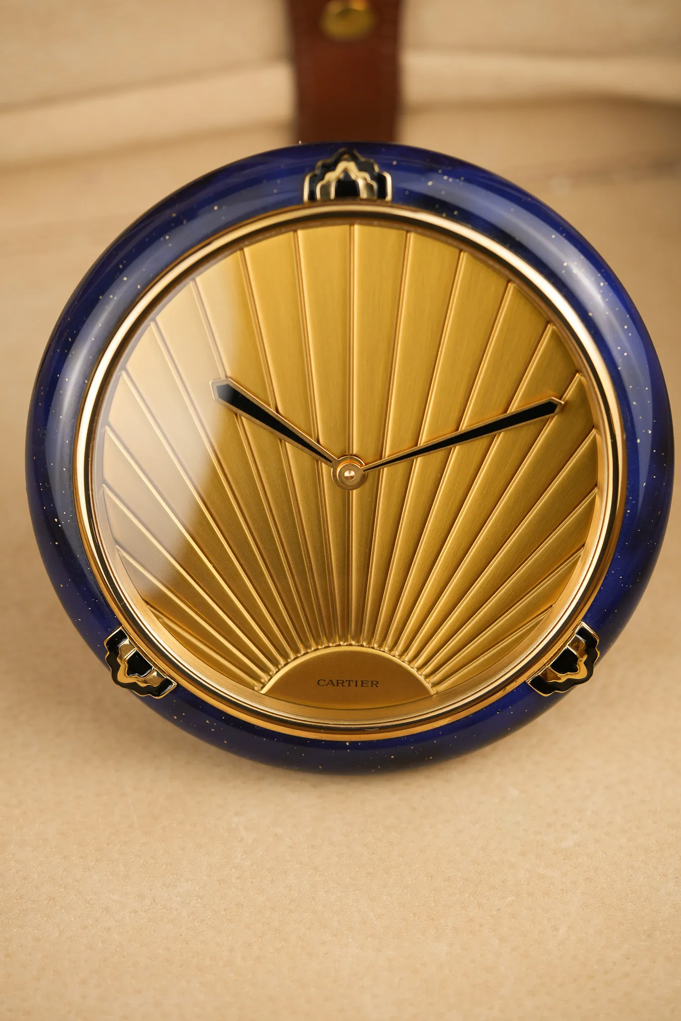 In the late 1980s and 1990s, as Cartier was expanding into a global design powerhouse, the maison extended its language beyond watches and jewelry. Leather goods. Silver objects. Decorative pieces for the home. Not accessories, but extensions of taste. This Art Deco–inspired lapis desk clock is part of that world.