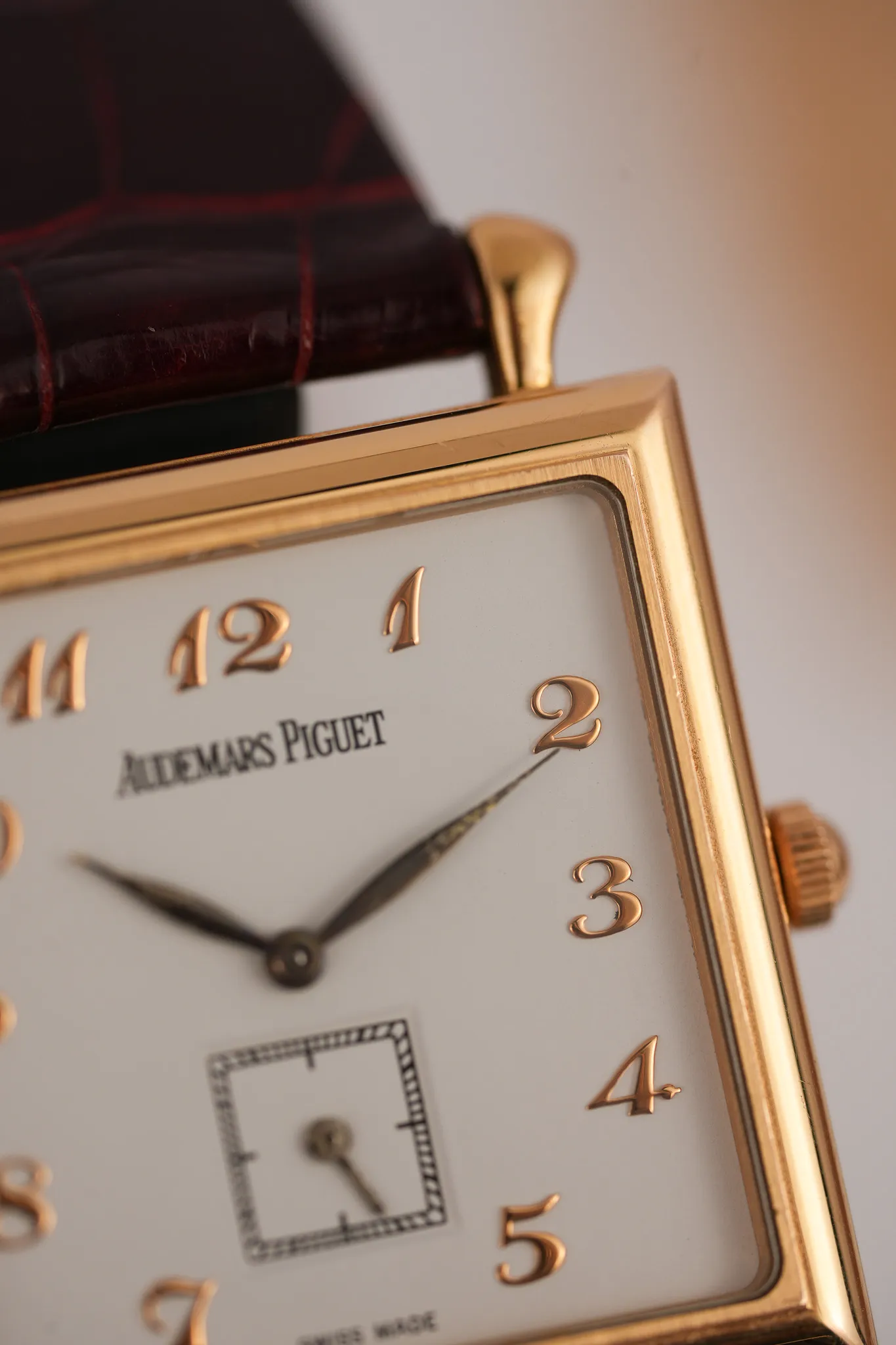 The dial remains unmistakably Cartier. Roman numerals, blued steel hands, and the secret signature hidden in the VII. There is no minute track, which feels intentional at this size. The cream-toned dial softens the gold and keeps the watch visually balanced. Nothing feels crowded. Nothing feels missing.