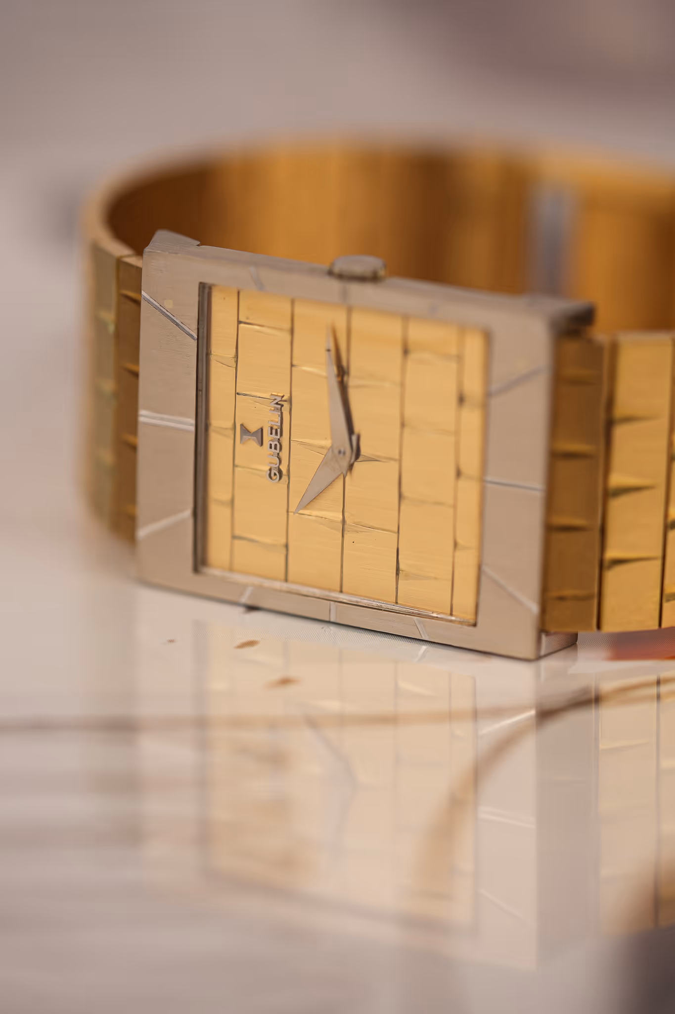 This angular 1960s Gubelin earned its nickname—The Brutalist—thanks to its unapologetically sharp geometry and cold-blooded precision. Crafted in 18k yellow gold with an 18k white gold bezel, it doesn’t just wear architecture—it is architecture. The entire design feels like it was pulled straight out of a modernist museum and shrunk to wrist-size.