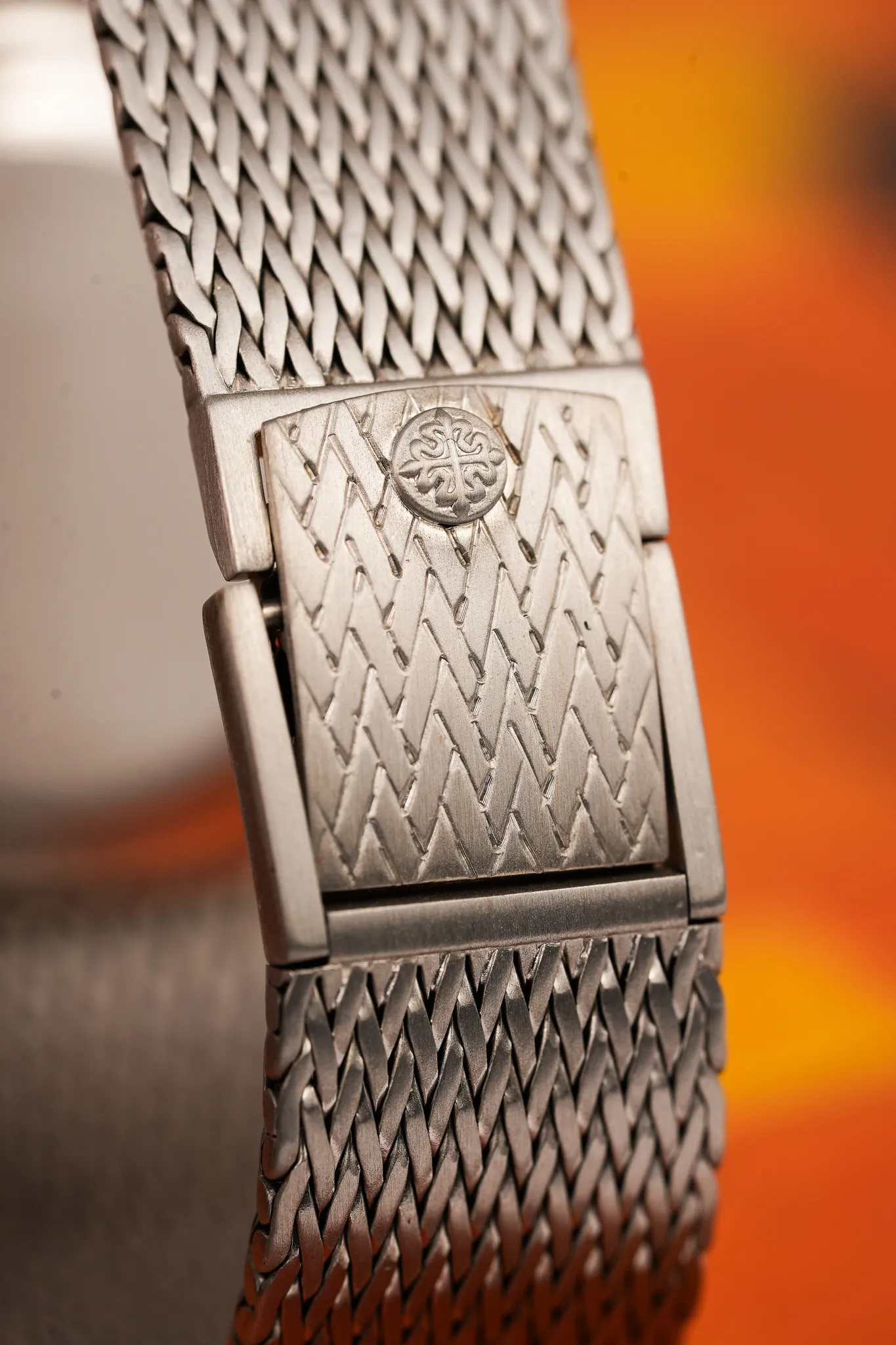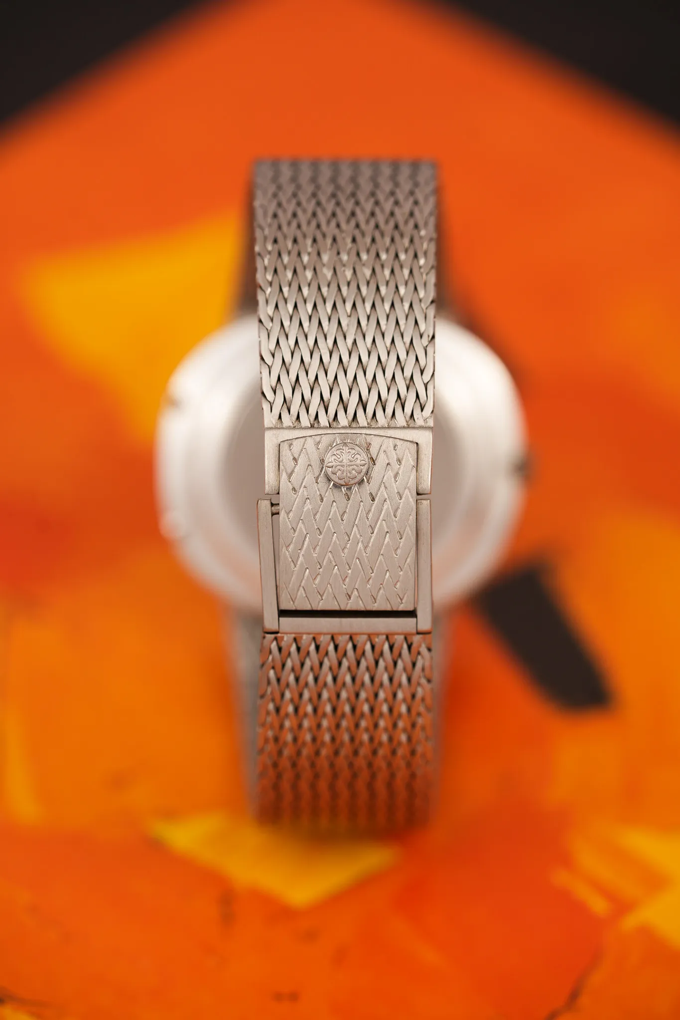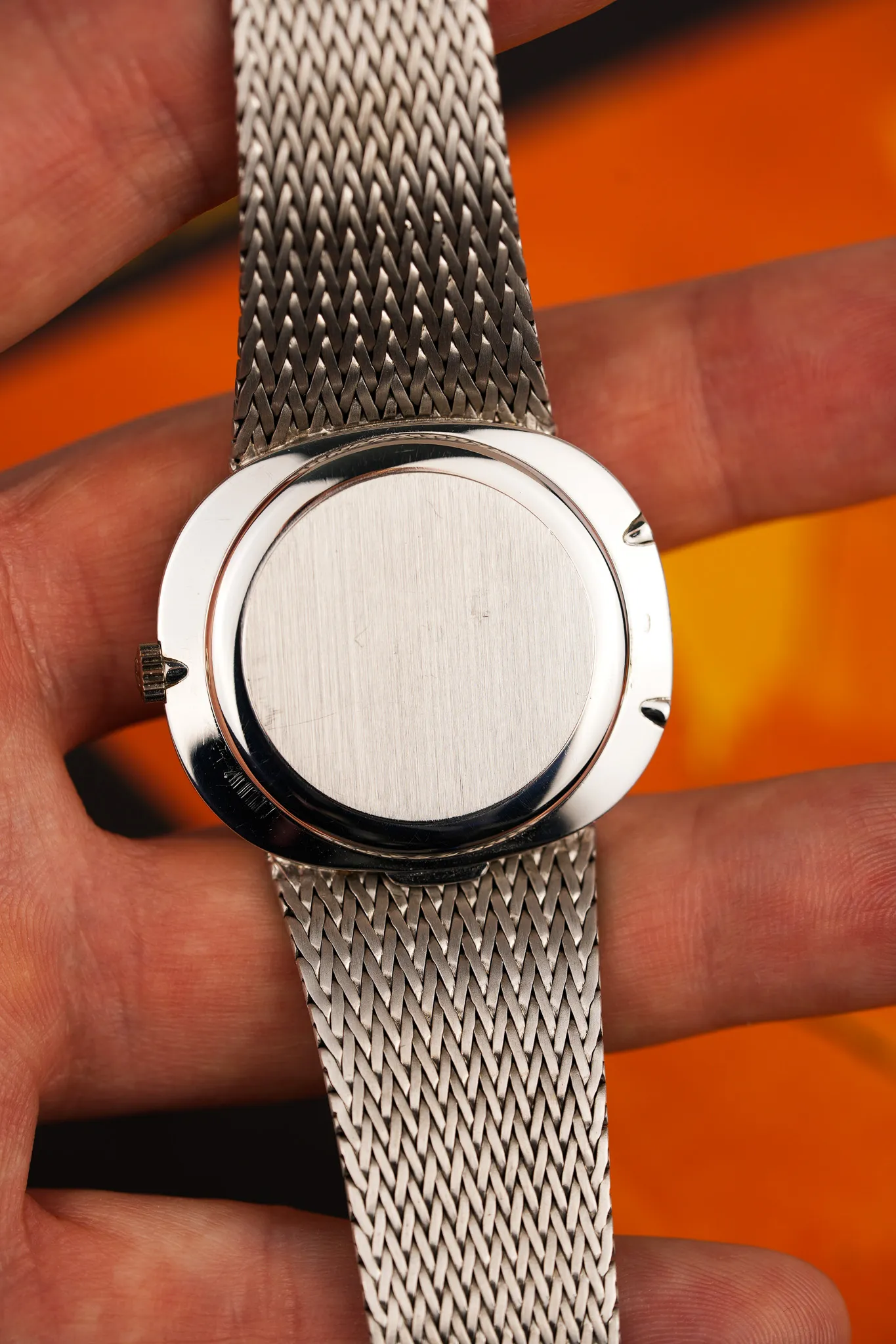 18K white gold case remains sharp with clean lines and visible hallmarks.