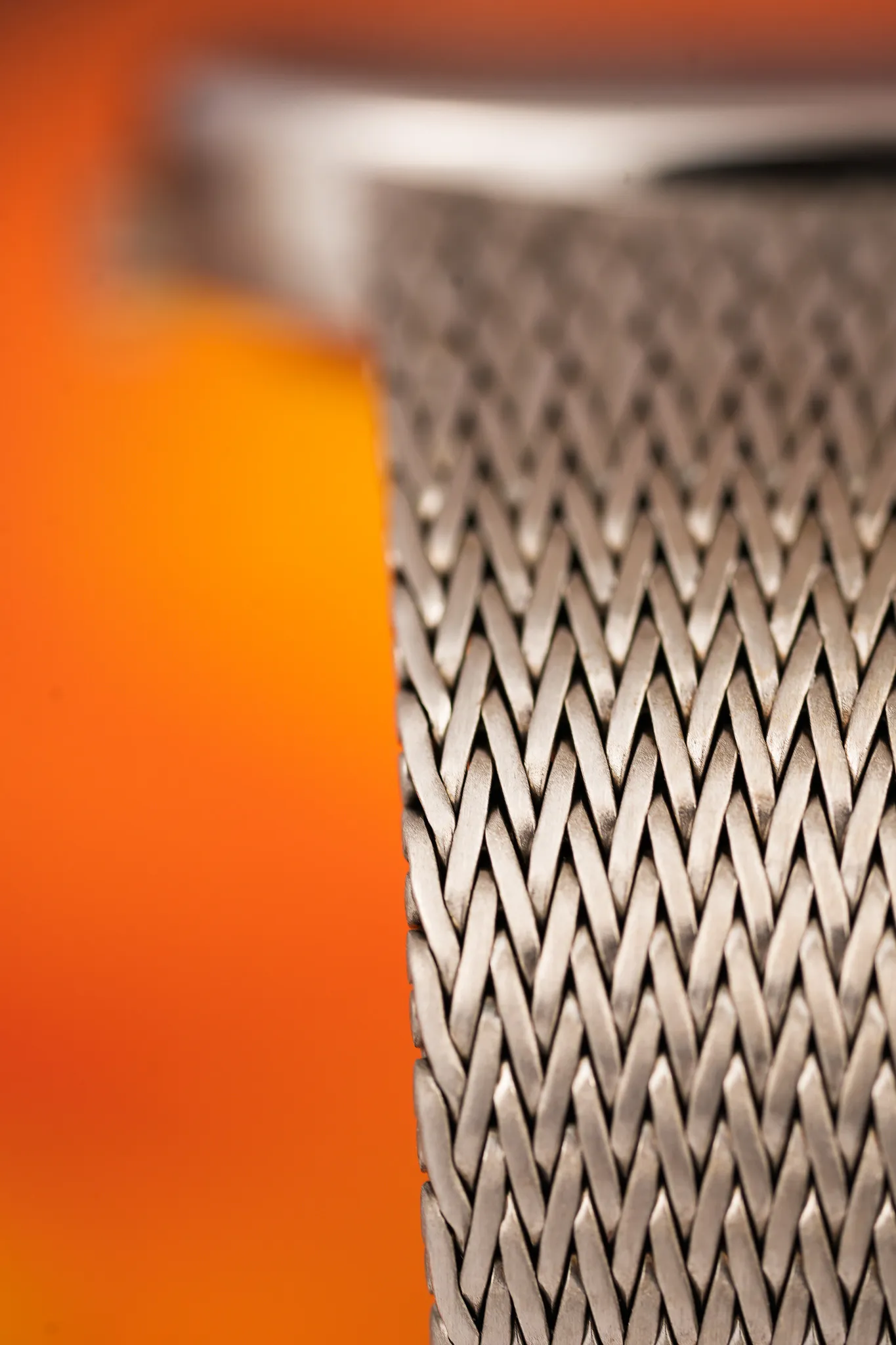Integrated chevron-pattern bracelet in top condition, no warp or knicks, fits up to 7.2-inch wrist.