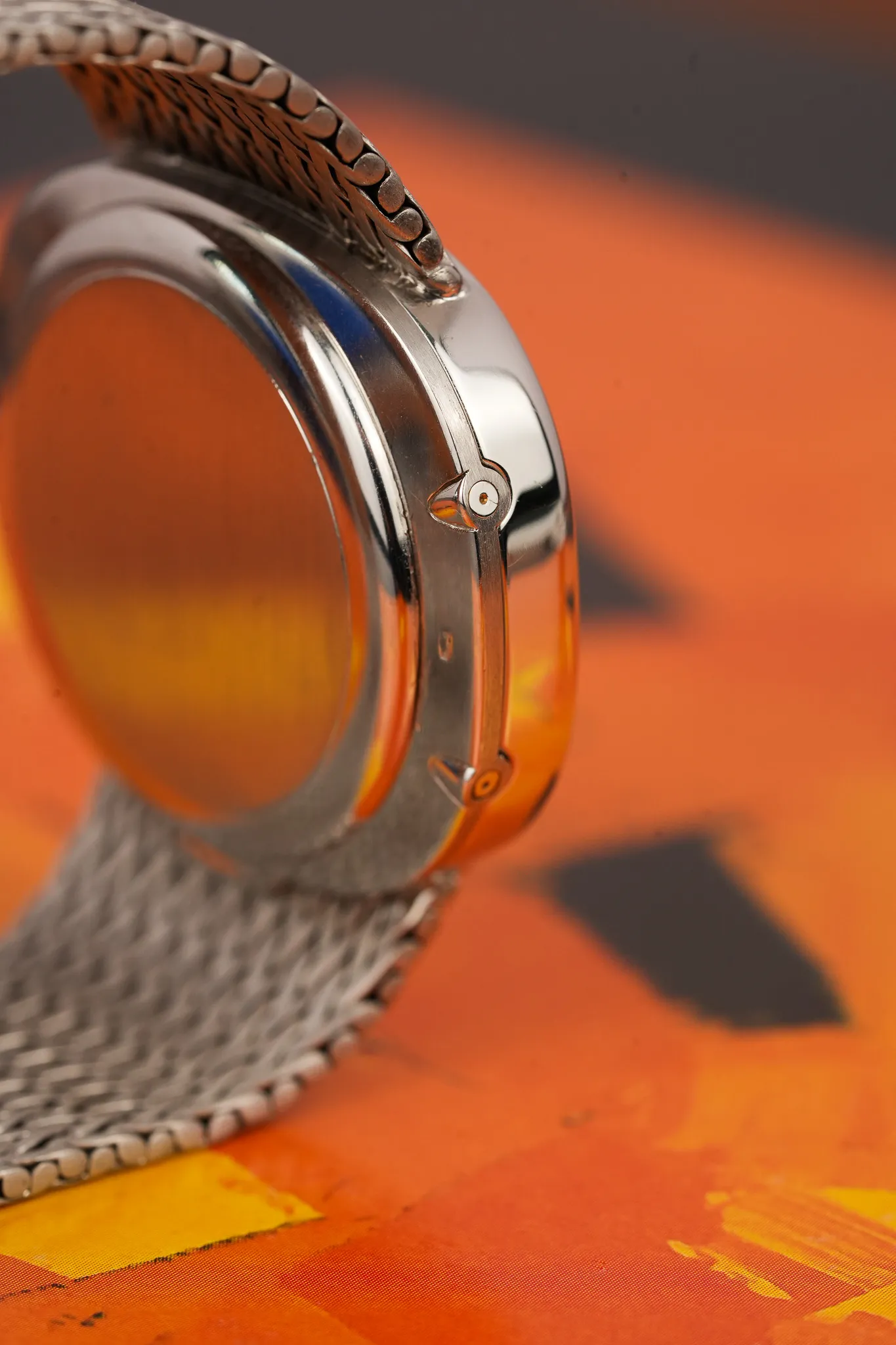 It’s easy to mistake it for an horizontal Ellipse from afar—but that’s part of its charm. The design hides its complexity in plain sight, a travel complication seamlessly integrated into an otherwise minimalist facade. It’s the kind of watch that turns seasoned collectors into students again.