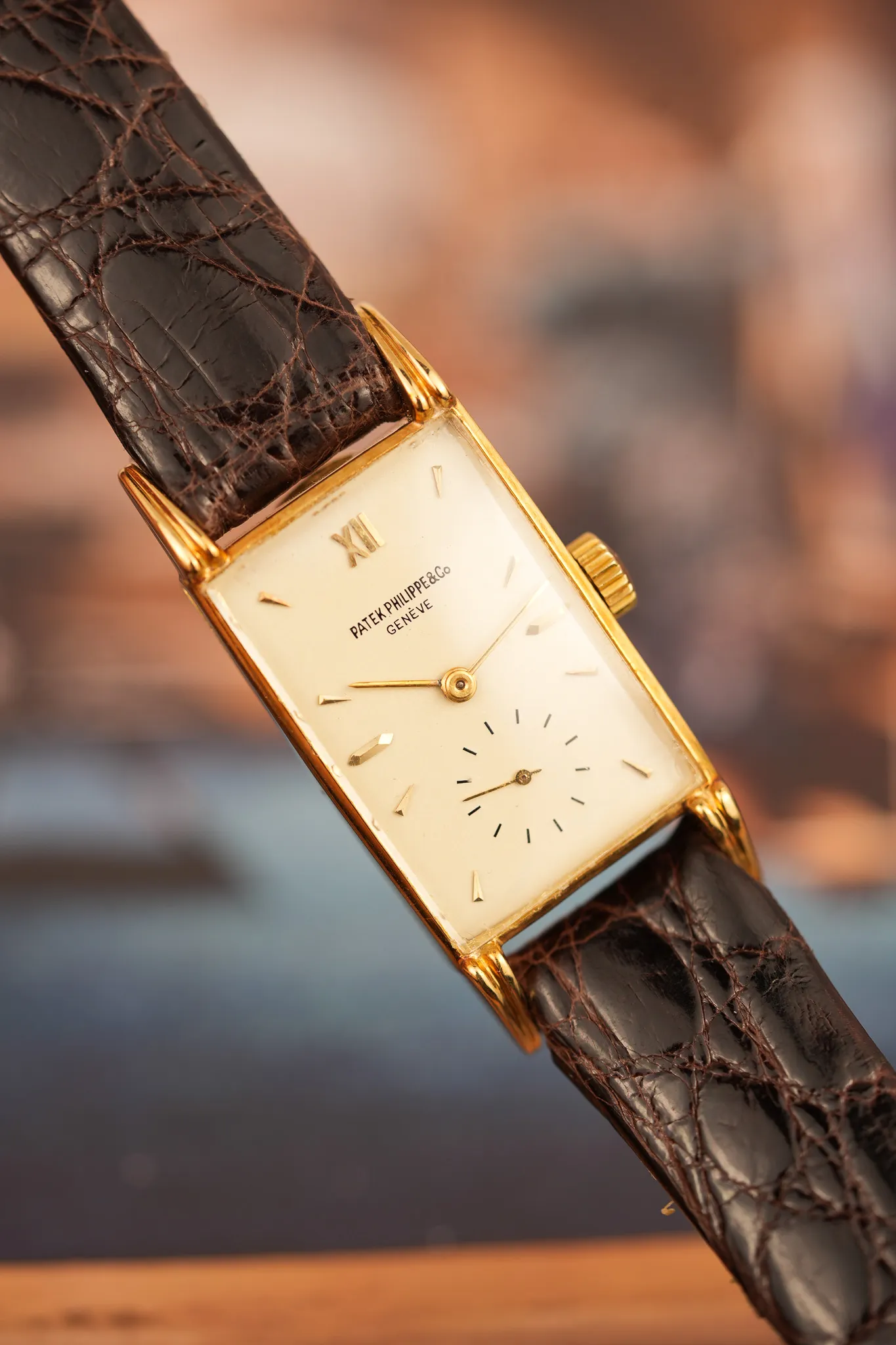 The cream dial features the correct “Patek Philippe & Co Genève” signature and shows honest aging with light surface patina consistent with the period.