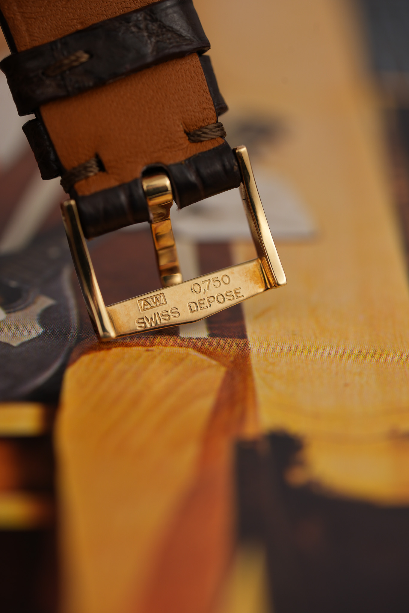 To top it off, it's paired with a new brown crocodile strap and an AW-signed solid 18k gold buckle. You can’t eat it, but you’ll probably stare at it long enough to forget lunch.